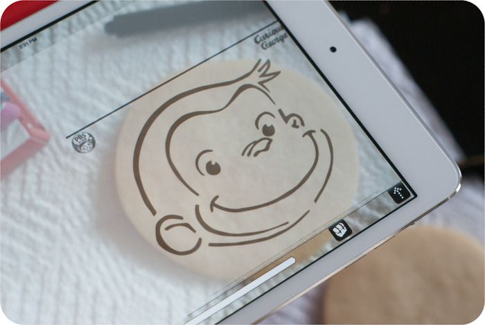 Place the cookies under the raised iPad and trace the image using a food coloring pen. (If you look at the iPad, you can see that I took some liberties with the image...making the right ear more prominent and closing the open lines.)