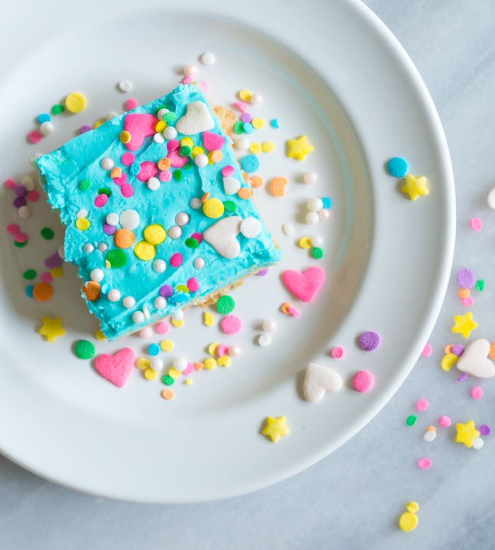 No unicorns were harmed in the baking of these blondies. When we visited Washington DC a few years ago, we went to this great bakery in Georgetown called Baked & Wired. There they sell the prettiest (and yummiest) cupcake called Unicorns and Rainbows with blue frosting and rainbow sprinkles.